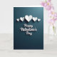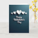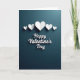 This greeting card shows five white hearts arranged in a gentle arc on a deep teal background. The middle heart is the largest, and the hearts on each side get a little smaller as they curve outward, which makes the layout feel calm and balanced. Soft lighting creates light shadows under each heart, so they look like paper cutouts resting just above the surface. You can also see a faint folded-paper texture on the hearts, adding a quiet, thoughtful detail. Near the bottom, the words “Happy Valentine’s Day” appear in smooth, flowing white lettering that matches the hearts. The simple colors and tender shapes make it feel like an honest way to say “I care,” whether it’s for a partner or a close friend 🥰. It’s the kind of card that lets the message land without needing anything extra ❤️.
