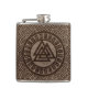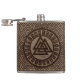Valknut Symbol and Runes on Celtic Pattern on Wood Hip Flask
