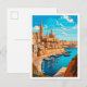 Valletta Malta Travel Vintage illustration Postcard