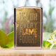 A close-up of a golden surface with the words Valor In Every Flame Fought embossed into it. The word Flame is filled with a burning fire image.