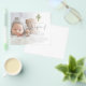 A great value alternative WITHOUT ENVELOPES at SMALLER size 4.5” x 5.6” and at a budget price. (Standard A6 envelopes are the nearest size to fit). Eucalyptus Cross Script Photo Christening Invitation. A set script for The Christening Of and the rest of the text you can easly personalise. Replace the sample picture with your own favorite.