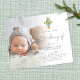 A great value alternative WITHOUT ENVELOPES at SMALLER size 4.5” x 5.6” and at a budget price. (Standard A6 envelopes are the nearest size to fit). Eucalyptus Cross Script Photo Christening Invitation. A set script for The Christening Of and the rest of the text you can easly personalise. Replace the sample picture with your own favorite.