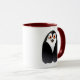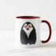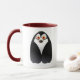 Mug features a cute cartoon "vampire penguin" with a black cape and red vampire fangs.
