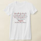 My overall review is that the T-shirt is nice, it fits true to size however the font is significantly smaller than advertised and you can't read it. The printing is unreadable and there is a strain to read it. It does not look like the advertised product. Maybe the shirt color is darker or a larger more visible font should have been used. Photos with and without flash and font is barely legible.