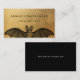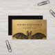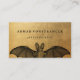 Very cool and mysterious calling card of vintage etching of vampire bat on gold foil background.