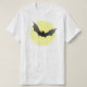 An awesome new party shirt for Halloween 2014! Featuring a cool black silhouette of a vampire bat, flying with wings spread, in front of a bright full yellow moon. Choose this spooky Halloween t-shirt design on many different shirt and apparel styles and colors, and grab yours today! Also fully customizable...add text, photos, artwork...resize the image.