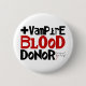 Phrase, “Vampire Blood Donor” in black & red infamous font. Black medical cross in upper corner & fangs dripping with blood located in the opposite diagonal corner.