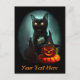 Vampire Cat and Wizard Pumpkin Halloween Surreal Holiday Postcard