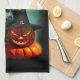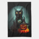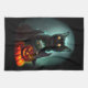 Vampire Cat and Wizard Pumpkin Halloween Surreal Kitchen Towel
