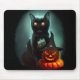 Vampire Cat and Wizard Pumpkin Halloween Surreal Mouse Pad