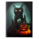 Vampire Cat and Wizard Pumpkin Halloween Surreal Notebook