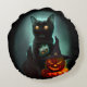Vampire Cat and Wizard Pumpkin Halloween Surreal Round Pillow
