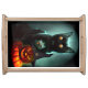 Vampire Cat and Wizard Pumpkin Halloween Surreal Serving Tray