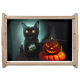 Vampire Cat and Wizard Pumpkin Halloween Surreal Serving Tray