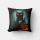 Vampire Cat and Wizard Pumpkin Halloween Surreal Throw Pillow