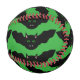 This awesome baseball features a creepy vampire bat with the face of a cat. The bat is flying with wings outstretched and has the evil green eyes of a creepy cat and some scary white fangs. This creepy chimera is the perfect creature for a haunting Halloween.