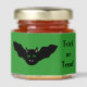 These awesome Halloween honey jar favors make the perfect treat for your Party Guests. The design features a creepy vampire bat with the face of a cat. The bat is flying with wings outstretched and has the evil green eyes of a creepy cat and some scary white fangs. This creepy chimera is the perfect creature for a haunting Halloween. There is custom text so you can personalize this design with your own message.