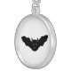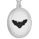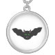 This beautiful necklace features a creepy vampire bat with the face of a cat. The bat is flying with wings outstretched and has the evil green eyes of a creepy cat and some scary white fangs. This creepy chimera is the perfect creature for a haunting Halloween.