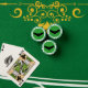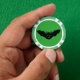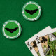 This awesome set of poker chips features a creepy vampire bat with the face of a cat. The bat is flying with wings outstretched and has the evil green eyes of a creepy cat and some scary white fangs. This creepy chimera is the perfect creature for a haunting Halloween.