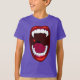 Vampire teeth or the fangs of a demon, monster, bloodthirsty beast or other voracious creature of the night; sharp white canines, a drop of red blood, red lips, campy horror show poster type art, original drawing by M Chauem. This shirt is great for hallowe'en, house parties, creepy gatherings or monster themed school events. You can use the customize feature to add text such as "bite me" or something equally clever. Have a scary good time!