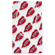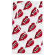 image of red lips with vampire fangs and a drop of blood. lips are a red color.