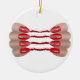 Lightweight, smooth, pure white ornament with nice sheen. Perfect size to be seen from across the room ... and to attract closer inspection! Price was great for ordering enough for the whole family! Clear, bold black design just as requested. Matches the order exactly. Just so nice!