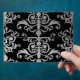 Elegant envelopes to fit 7 x 5 inch Halloween party or wedding invitations. In a light to dark gray damask pattern on black with blood splatters on the front.