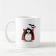 Get a little spooky with this adorable Dracula themed vampire penguin. This penguin features cute little fangs and two smiling bats flying near by. Show off your Halloween happiness!