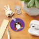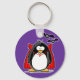 Get a little spooky with this adorable Dracula themed vampire penguin. This penguin features cute little fangs and two smiling bats flying near by. Show off your Halloween happiness!