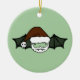 This cute gothic themed holiday ornament has an image of a vampire santa with fangs and bat wings.