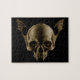 Unique skull illustration features a dark and haunted design with vampire fangs and bat wings.