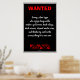 Some girls know just what they want. And this Gothic art print gives new meaning to "Vampire Hunter" ;D Big bold red text declares "Wanted" while all the requirements a girl needs for the ultimate undead boyfriend is spelled out in white text to read; Strong, silent type who enjoys long walks under a full moon, back alleys, dark corners. dismal castle ruins, and thinks my neck is the sexiest thing he's ever seen. ©Tabz Jones all rights reserved.