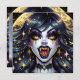 Halloween invitations. Female vampire with gold eyes and teeth and sparkles in her hair. Gold fangs, pale skin. Cool for Halloween or anyone who loves vampires.