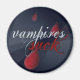 Vampires suck - get it? Show your support (or derision) for everyone's favorite fanged friends (or is that fiends?...) with these fun pins/badges, which show the phrase "Vampires Suck" over three spattered blood droplets. Suitable for goths, indies and more!