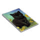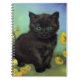 Notebook featuring a black cat in the style of Van Gogh! A fluffy black kitty sits next to yellow flowers against a green and blue background. A fun gift for cat lovers and Dutch art collectors!