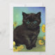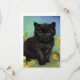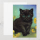 Card featuring a black cat in the style of Van Gogh! A fluffy black kitty sits next to yellow flowers against a green and blue background. A fun gift for cat lovers and Dutch art collectors!