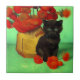 Van Gogh Black Kitten Red Flowers Ceramic Tile