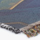A quality printed throw has its advantages. This is a much finer weave throw than its loopier cousins, and though lighter, it is worth the investment for custom room accessorizing. The back is much prettier than the typical brown, and the fringe on the long sides very vivid, the selvage nicely done. Before photographing, I washed the throw in cold water, delicate, with a thicker woven throw the same size. On tumble dry low, this throw was dry in half the time as the other. This is a very practical quality if you use throws for furniture covers or to wrap up in frequently. The sleekness of the fabric makes it a great layer for accenting or protecting without the feeling of sitting on too much stuff. Perfect for napping or when you feel a light chill coming on. The color printing is beautiful and on this fabric, matched the design and color of my Photoshop image. This is an advantage for blending room fabrics and colors. The fringe on the short sides prints the colors from the design image and therefore varies from the side fringe. I streaked a white fractal line through the plaid pattern to give the illusion of weaving. This printed as crisp as an illusory thread, and put some white in the short side fringe, showing another advantage of print vs loomed- for artistic purposes, line lines, detail, and color integrity can be planned and preserved. My loomed throws have color limitations and more of a needlepoint texture. Print throws reproduce an exact image. The throw felt a little stiff straight out of the package, but this went away in the first delicate wash. Of course I searched the wash water for ink or bleeding and there was none.