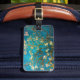 personalized luggage tag with print of beautiful turquoise background with flowering almond tree.Vincent Van Gogh Blossoming Almond Tree print.