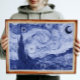 A dark blue filter edition of The Starry Night by the Dutch Post-Impressionist painter Vincent van Gogh painted in June 1889. It depicts the view from the east-facing window of his asylum room at Saint-Rémy-de-Provence, just before sunrise, with the addition of an imaginary village.