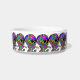 This is a heavy, durable bowl decorated with Tibbies of many colors, the perfect size for hungry/thirsty Tibs. The design is interesting and printing clear.
