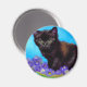 Magnet featuring a cat and flowers in Van Gogh style! A black cat poses with purple flowers. A purr-fect gift for cat lovers and Dutch art collectors!