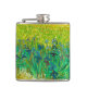 Flask featuring Vincent van Gogh’s oil painting Field with Irises Near Arles (1888). Beautiful blue irises decorate the golden fields in Arles, France. A marvelous gift for lovers of Post-Impressionism and Dutch art collectors!