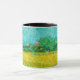 Coffee Mug featuring Vincent van Gogh’s oil painting Field with Irises Near Arles (1888). Beautiful blue irises decorate the golden fields in Arles, France. A marvelous gift for lovers of Post-Impressionism and Dutch art collectors!