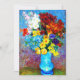 Card featuring Vincent van Gogh’s oil painting Flowers in a Blue Vase (1887). Beautiful flowers of various colors are arranged in a blue vase: red, purple, white, blue, yellow, red, orange. A wonderful gift for fans of Post-Impressionism and Dutch art.