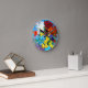 Clock featuring Vincent van Gogh’s oil painting Flowers in a Blue Vase (1887). Beautiful flowers of various colors are arranged in a blue vase: red, purple, white, blue, yellow, red, orange. A wonderful gift for fans of Post-Impressionism and Dutch art.