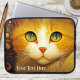 Laptop sleeve featuring a colorful painting of a cute kitty in van Gogh style. The text is optional.
