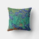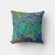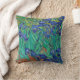 Van Gogh "Irises" throw pillow. Blue floral impressionism art.