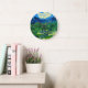 Clock featuring Vincent van Gogh’s oil painting Olive Trees in a Mountainous Landscape (1889). Green olive trees decorate a mountainside underneath a starry night sky. A marvelous gift for lovers of Post-Impressionism and Dutch art collectors!