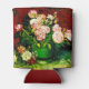 Can Cooler featuring Vincent van Gogh’s oil painting Bowl with Peonies and Roses (1886). Beautiful pink and white peonies and roses sit in a green vase against a red background. A wonderful gift for fans of Post-Impressionism and Dutch art.
